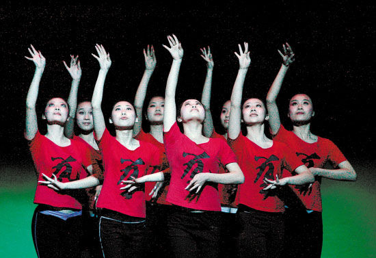 艺术职业学院的学生在昨天的新闻发布会前表演节目。本报记者 林云龙 摄 |