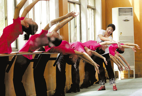 开学第一天,老师已给25个女孩做了规矩,以后要站如松,坐如钟,尤其是腰,坐着也要挺直,不许如糯米般粘在椅子上。开班典礼现场,有几个学生支持不住,偷偷靠在椅背上,马上有老师用笔捅她们的背,“坐直”。不仅坐姿、站姿,连发型也有要求,头发必须扎起来,露出额头,短得扎不进去的头发要用发卡别住。昨天很多女孩子头上密密麻麻别了10来个发卡,爱美的女孩悄悄在发卡上做文章,在头顶别一个金色的小蝴蝶……