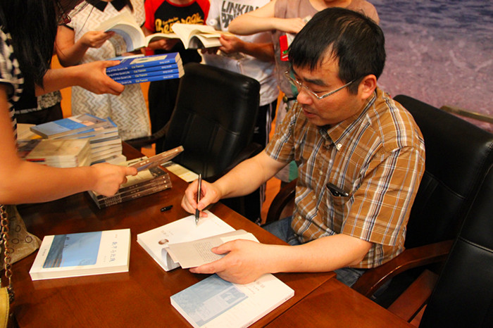 讲座结束,蔡教授还带来了他的著作进行了一场小型现场签售活动,蔡教授也随和地为同学们一一签名留念。