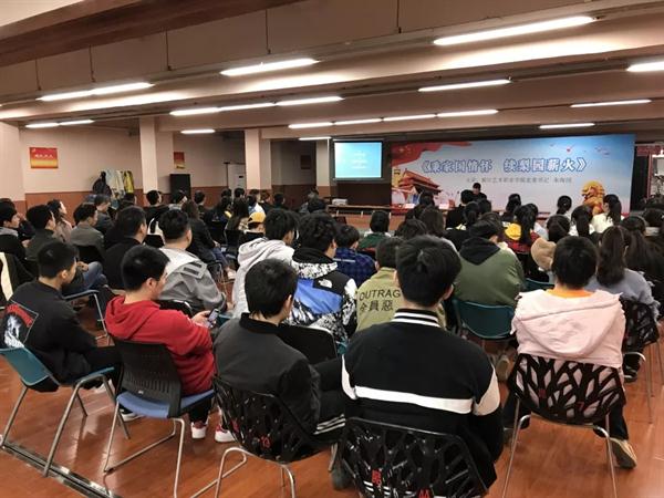 现场播放了热播电影《流浪地球》片段,让大家感受剧中人物舍小我为大我的英雄主义精神,播放了访谈节目《平语近人》片段,习总书记在梁家河插队期间和40年后重回当地人家时场景感人至深。