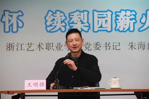 王明强代表浙昆对朱海闵为大家带来的这堂满怀家国和德艺双馨梨园精神的生动党课表示诚挚感谢,对浙艺一直以来对昆剧班教育的重视及对浙昆发展的大力支持表示由衷感谢。