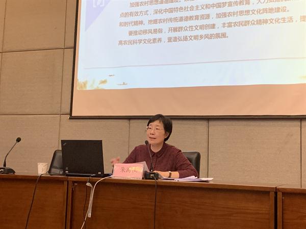课堂上,朱海闵谈到,习近平总书记在十九大报告中明确提出了“农业农村农民问题是关系国计民生的根本性问题,必须始终把解决好‘三农’问题作为全党工作重中之重。”2018 年“一号文件”也对实施乡村振兴战略进行了全面部署,并做出了具体要求。实施乡村振兴战略是贯彻习近平总书记“三农”思想的重大举措,是新时代农业农村现代化的新起点新征程,是关系全面建设社会主义现代化国家的全局性、历史性任务,是解决新时代我国社会主要矛盾的迫切需要,是实现“两个一百年”奋斗目标的必然要求。全面建成小康社会、基本实现现代化、全面建成社会主义现代化强国,每一步重点都在“三农”。