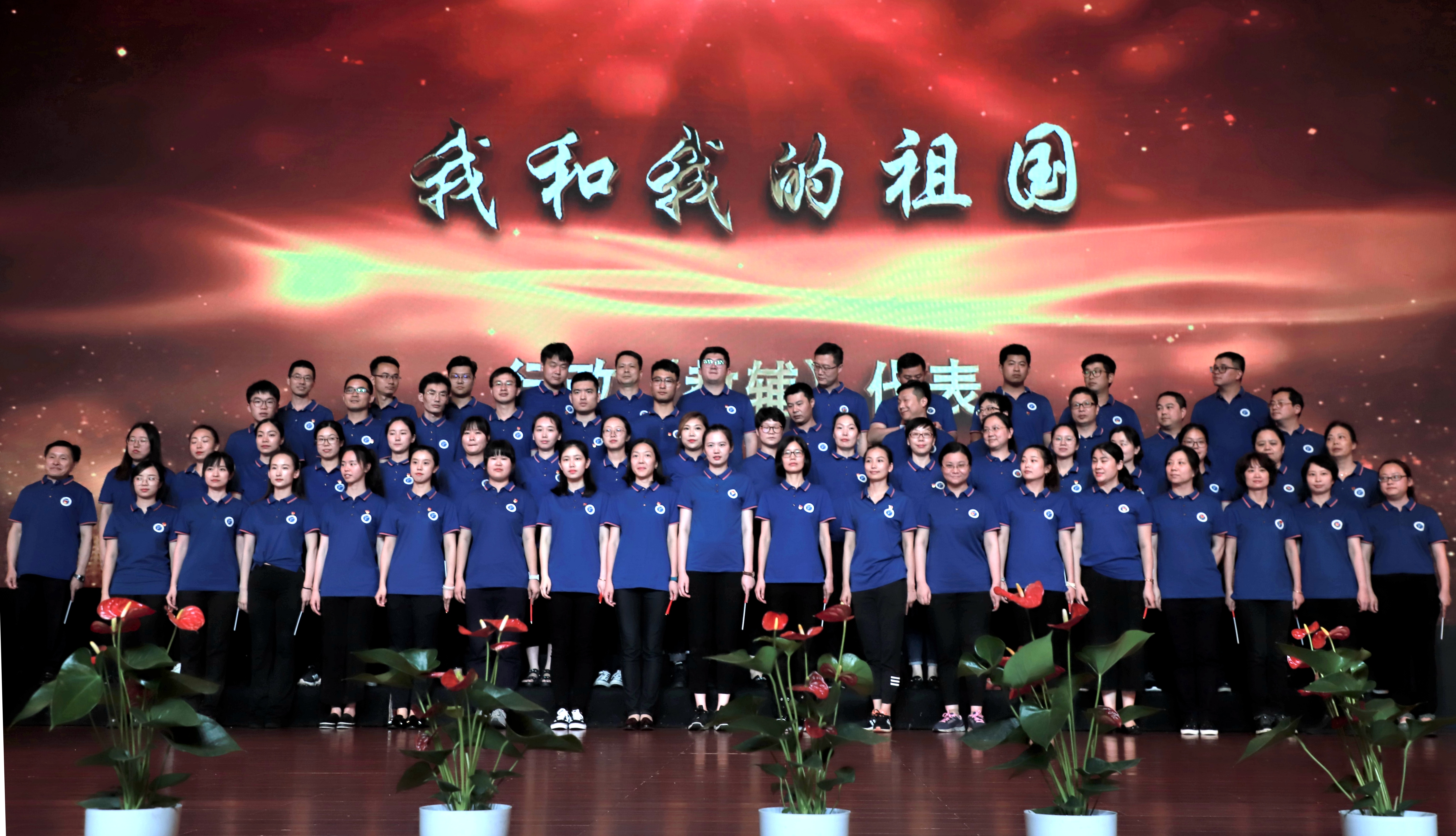 文化管理系合唱团带来的是《中国,中国,鲜红的太阳永不落》。他们坚定有力的歌声抒发着爱国情感,祖国是华夏儿女以生命铸就的太阳,照耀在心中永不坠落。基础教学部、社会科学部和继续教育学院联合合唱团带来的是改编版《年轻的朋友来相会》,这支队伍中有勤劳的60年代、浪漫的70年代、时尚的80年代,他们在朗诵中追忆时代变迁,在歌声里抒发建功新时代壮志。行政、教辅部门合唱团的曲目《我和我的祖国》,著名歌唱家陈芬芳的领唱收获了全场热烈的掌声,熟悉的旋律响起,观众席很多人跟着轻轻地应和,歌声回荡在每一位观众心中。