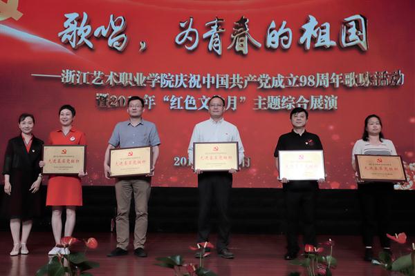大会对学校先进基层党组织和优秀党员进行表彰。党委副书记夏开堂宣读表彰文件,院长、党委副书记黄杭娟为先进基层党组织颁奖,党委委员、副院长章轲,党委委员、纪委书记徐芳,党委委员、副院长沈军甫,党委委员、副院长支涛为优秀党员颁奖。