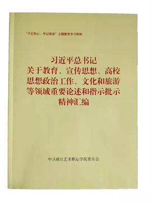 一是由校党委委员、副院长章轲,民间文艺研究中心主持工作副主任史长虹等著的《中国梦的文化溯源》一书,近日由浙江古籍出版社出版发行。该书是此次学校主题教育的补充读本,也是思政课教师教学的参考资料,该书从中国梦的文化传承入手,寻找中国梦的历史渊源,进行民族复兴的文化考校,通过文化溯源,激发中国梦思维,弘扬中国精神,坚定文化自信,激励全校师生继承和弘扬民族优秀文化,投身民族复兴大业,奋力书写中国梦的伟大华章。二是在做好规定书目学习的基础上,根据行业特点,学校主题教育办公室整理了习近平总书记关于教育工作、文艺工作、意识形态和宣传思想工作、高校党的建设和思想政治工作、文旅融合发展的重要论述和指示批示精神,制作了学习汇编,发放到全体党员,作为理论学习资料。