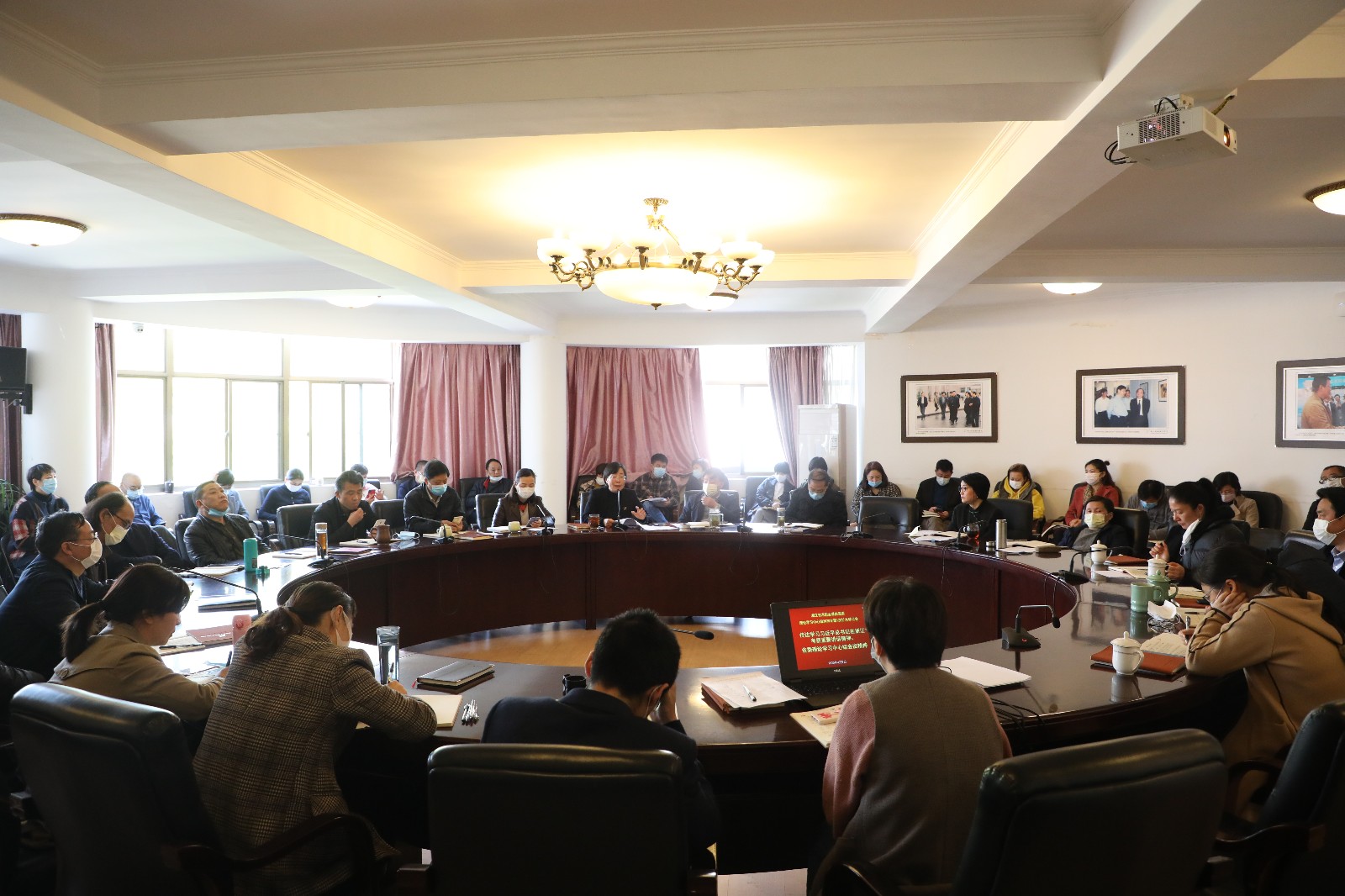 会议视频学习了习近平总书记在浙江考察时的重要讲话精神、省委常委会扩大会议精神以及省委理论学习中心组专题学习精神。校党委班子成员朱海闵、黄杭娟、夏开堂、章轲、徐芳、沈军甫、支涛、王涛、马向东依次交流了学习体会。
