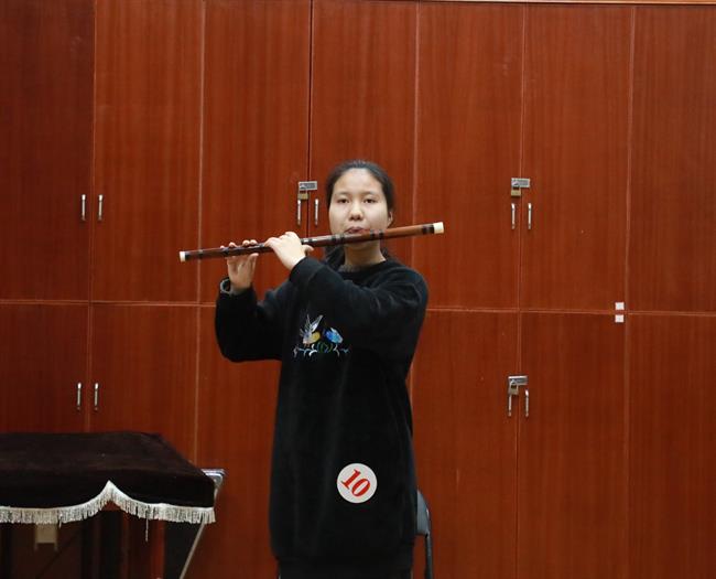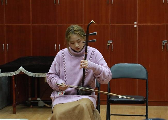 考生的演奏乐器涵盖了竹笛、主胡、二胡、扬琴、琵琶、阮、古筝、戏曲打击乐器等,考生们现场演奏了《秦土情》《枫桥夜泊》《郁轮袍》等曲目。从小学就开始学习古筝的杨同学现场演奏了《箜篌引》,她说:“从小学一年级就开始学习古筝,也很热爱越剧,对于这次考试充满了信心。”