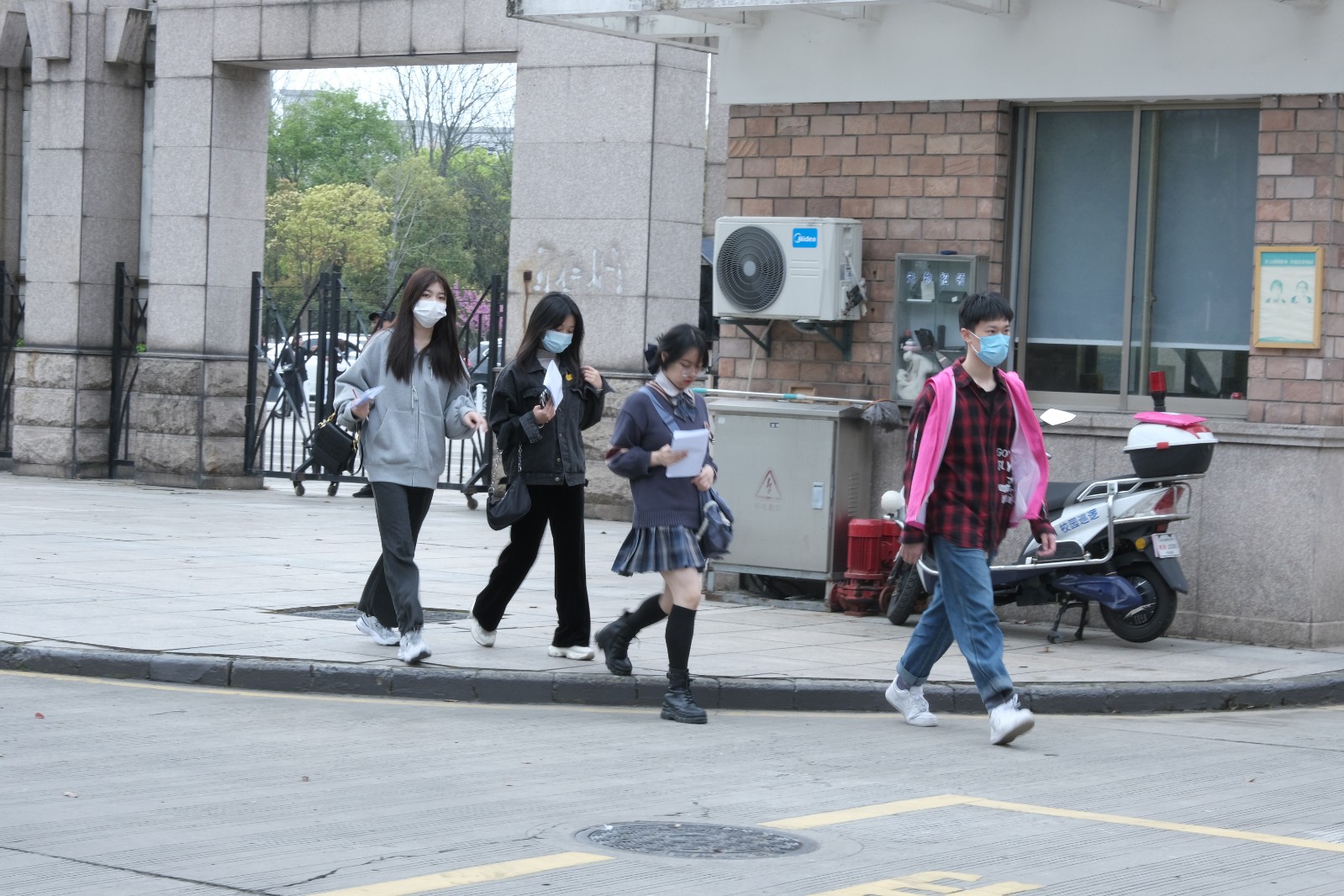 因为防疫需要,今年提前招生考生家长都不能进入校园。他们在校门附近踯躅不愿离去。一位报考戏剧影视表演的考生家长表示,虽然帮不上忙,等着总是安心点。希望孩子付出的努力能够得到一个好成绩。