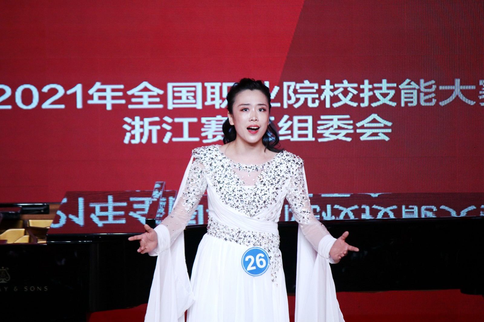 现场一位带队老师表示,参加这次国赛准备较为仓促,但这个参赛选手是一进校就被当作尖子生培养的。不管比赛什么时候来,平时的训练是最重要的。这次我们的参赛选手表现非常出色,不论是声音、服装,还是舞台表现力都很棒。国赛给了我们职业院校一个展示交流的平台,这次看到其他院校的学生也都很棒,尤其是几个美声的男生让人印象深刻。因为这次是国赛新改革的第一次尝试,大家对专业知识测试都做了充分准备,视唱部分也能看到选手们的进步。来到浙艺,也充分感受到了浙艺师生的周到和热情。