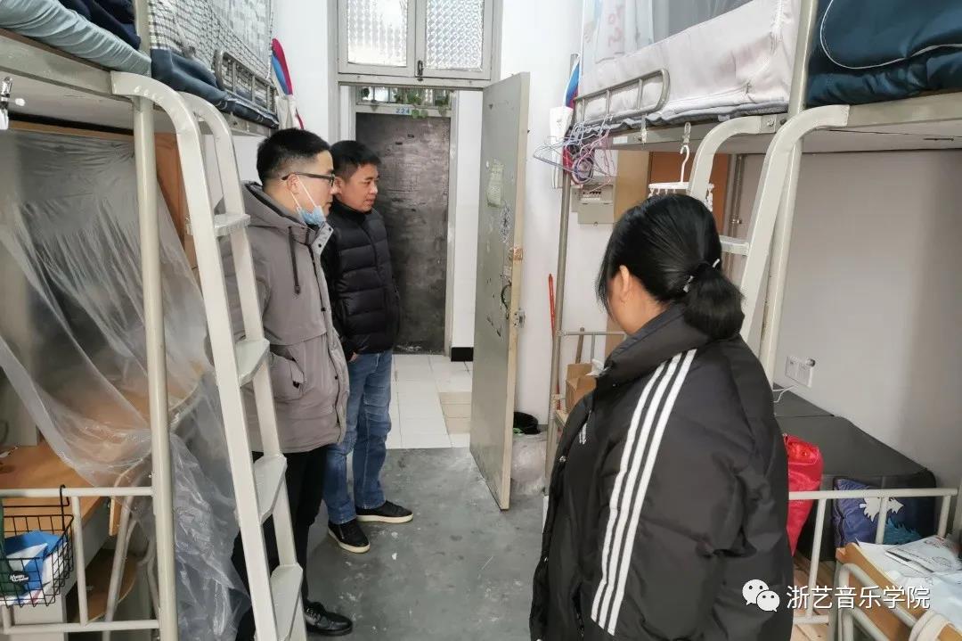 根据我校疫情防控及开学工作部署,音乐学院严格把控返校环节,充分了解和掌握学生返校情况,做到底数清、情况明、数据准。2月20日下午,音乐学院领导班子、辅导员、班主任对学生公寓进行走访检查。在走访寝室的过程中,院领导和同学们亲切交谈,提醒同学们开窗通风,做好疫情防护,叮嘱同学们劳逸结合,加强身体锻炼,养成良好的生活习惯,注重打造卫生、洁净、安全的宿舍环境,让同学们感受到莫大的温暖。公寓是学生的第二个家,通过此次走访,进一步拉近了师生距离,为今后学生工作的开展夯实了基础。