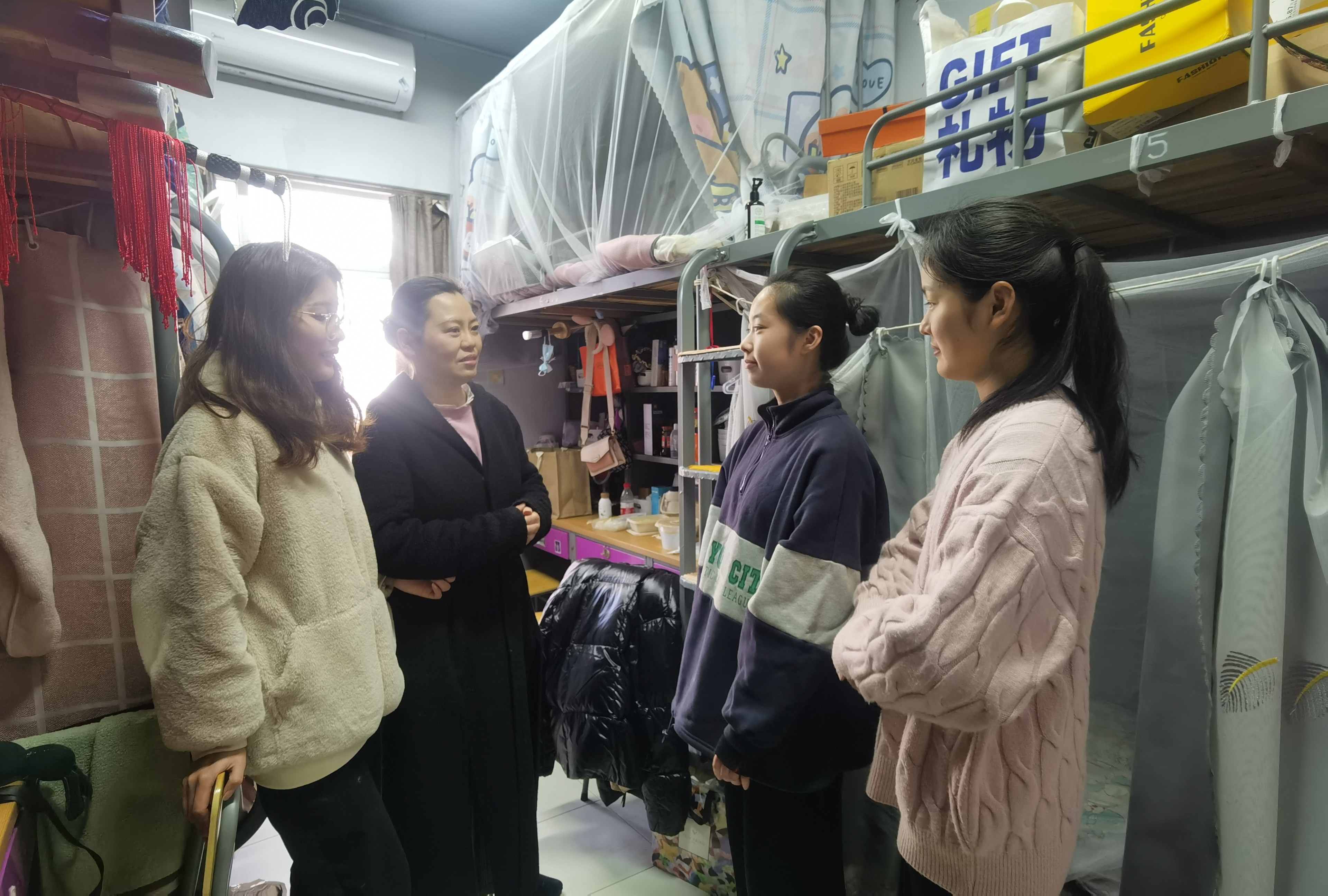 开学第一周,为了解返校学生情况,引导同学们尽快适应新学期,戏曲学院的老师们连日走访学生寝室。通过深入同学们的学习生活,老师们关心同学们进入新学期的适应情况,了解同学们遇到的问题和困难,叮嘱同学们注意保暖、注意饮食,提醒同学们继续做好疫情防控,勉励大家认真学习,勤加锻炼,帮助同学们面对新学期新生活,做好更充分的准备。