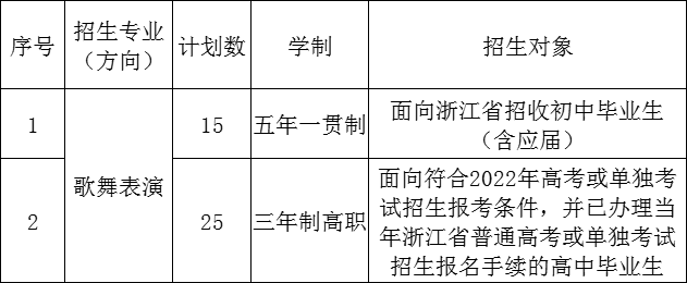 近年来,歌舞表演专业大批毕业生通过专升本选拔考试,进入浙江音乐学院、浙江外国语学院等本科院校学习,涉及专业有声乐表演、舞蹈表演、音乐教育、艺术文学等领域,继续攻读硕士学位及出国深造。