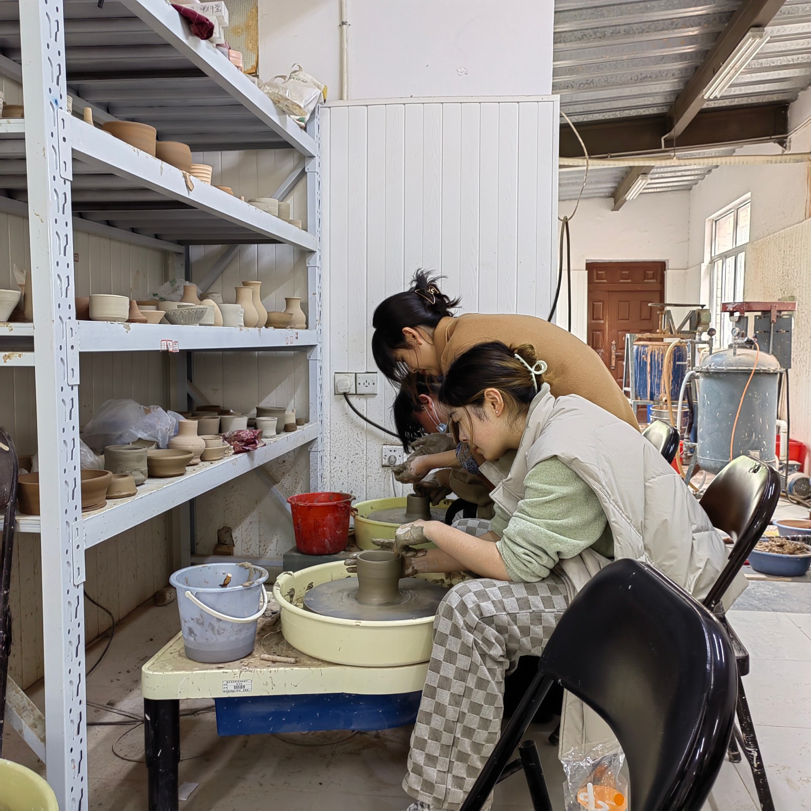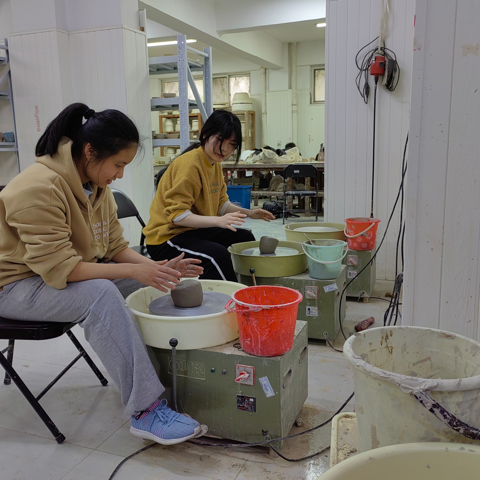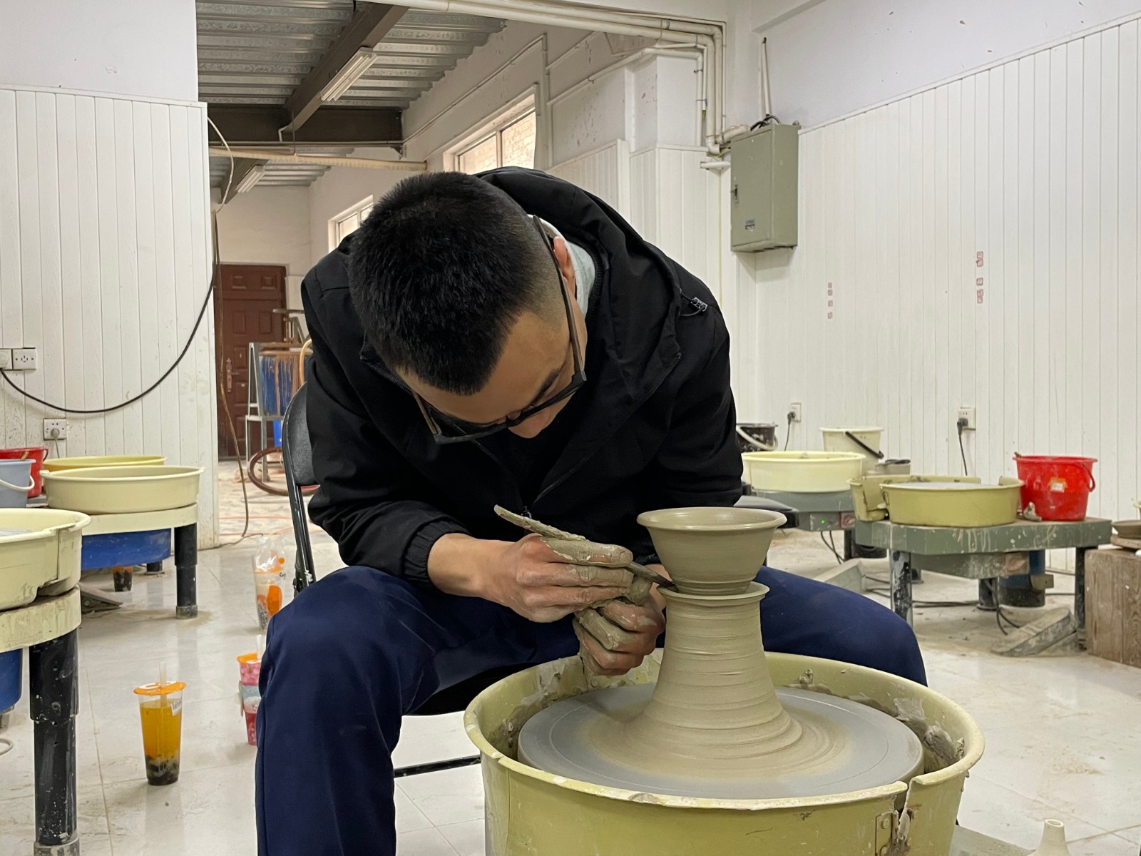 本次泥塑形象课主要分为“拉坯”与“捏塑”两部分。同学们在手工艺学院学生的指导下完成了自己的作品,努力在“拉胚”与“捏塑”的过程中寻找与音乐作品节奏、力度、中心的融通。同学们表示,泥塑是一种无声的立体音乐,通过这次泥塑基本知识的学习,豁然开朗,更加清醒的认识到如何在唱腔设计课中勤思考,宽眼界,多融合,如何发挥唱腔设计课的真实作用,将会持续努力,争取早日成为一名合格的越剧音乐伴奏人才。