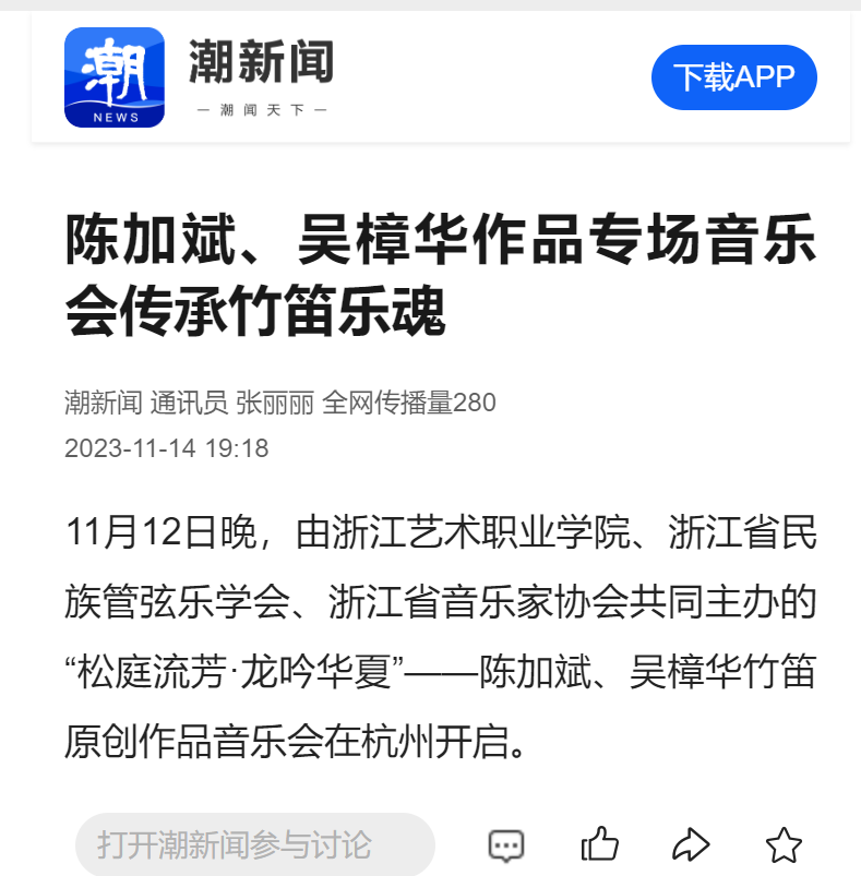 潮新闻:陈加斌、吴樟华作品专场音乐会传承竹笛乐魂