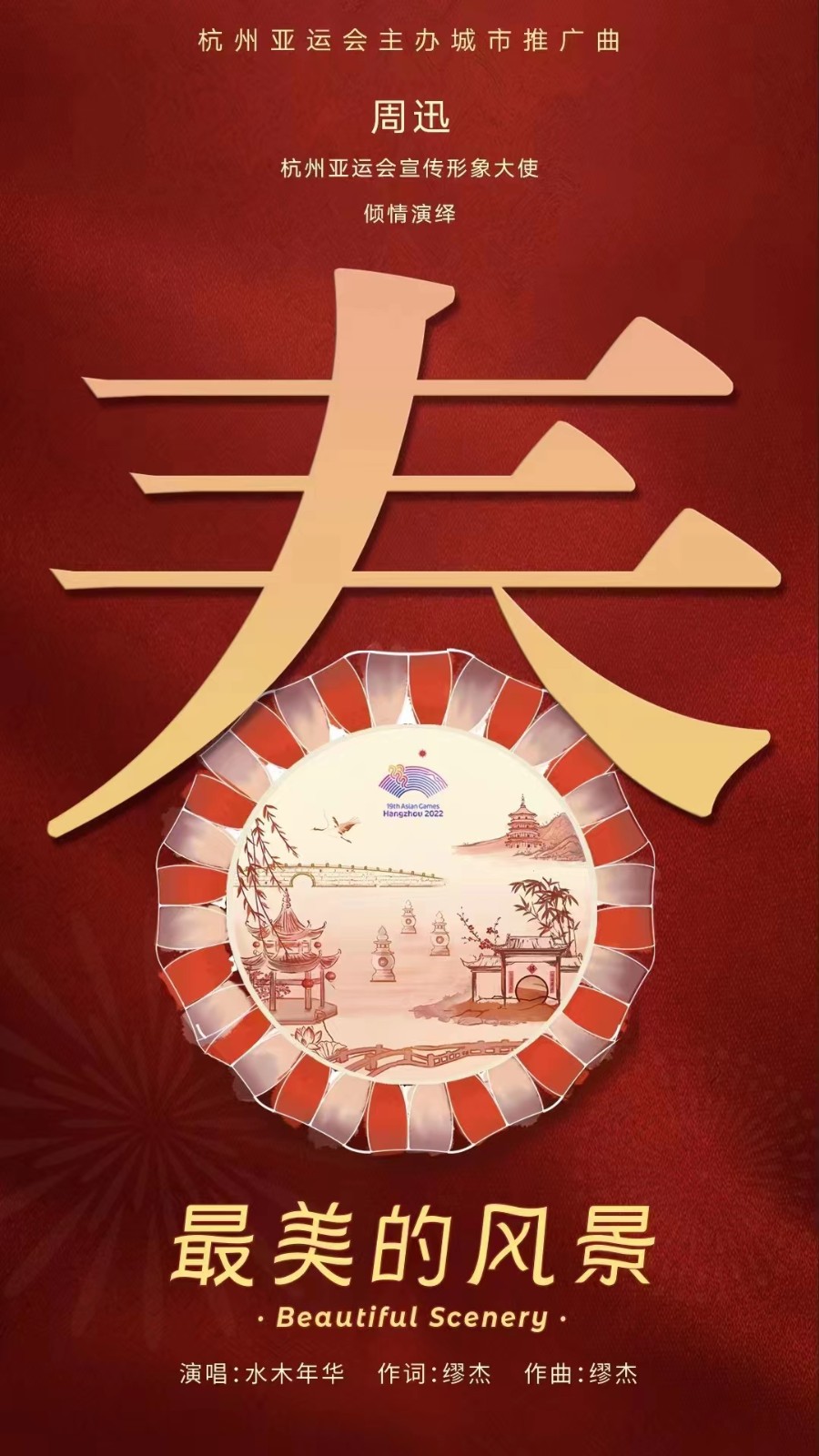 1月15日,由水木年华成员缪杰创作,水木年华演唱,杭州亚运会宣传形象大使、浙艺校友周迅倾情出演的杭州亚运会主办城市推广曲《最美的风景》演唱版MV发布。