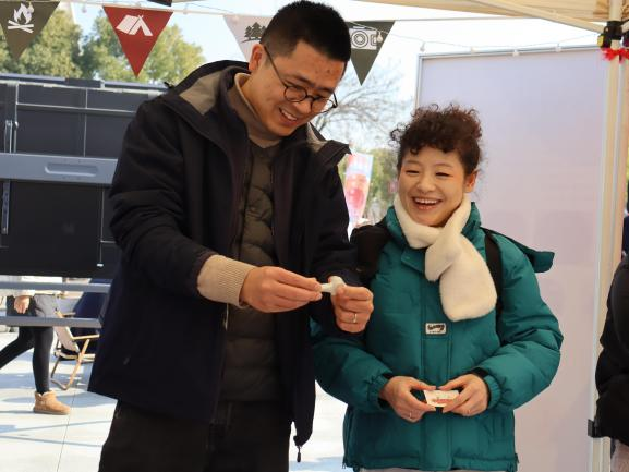 活动现场特邀自然造物、田博匠新、文博公司等非遗企业参与,摊位上非遗手工艺品琳琅满目,引得不少老师、同学驻足观赏。