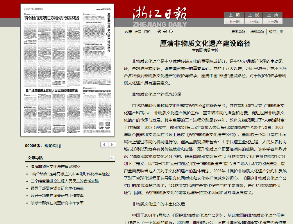浙江日报:厘清非物质文化遗产建设路径