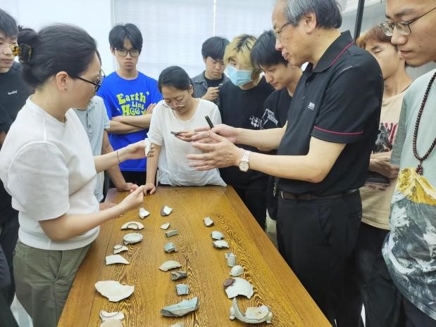 讲座结束后,华雨农邀请参与讲座的师生近距离观察他带来的南宋官窑瓷片。在观摩学习的过程中,华雨农一一解答了同学们的提问。通过此次讲座,同学们学习到了关于南宋官窑瓷器的知识,并表示会将学习到的知识和经验运用到青瓷创作实践中去,创作出更好的青瓷作品。