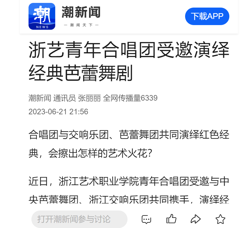 潮新闻:浙艺青年合唱团受邀演绎经典芭蕾舞剧
