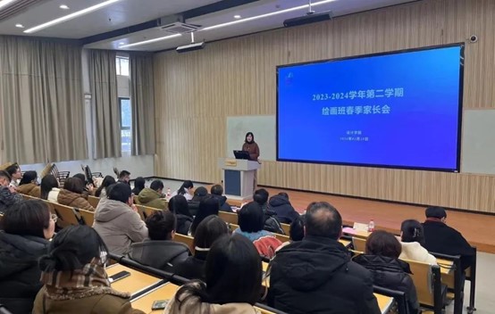 会上,郑园全代表浙江艺术学校对中专绘画班学生家长们的到来表示诚挚的感谢。她表示,学生成长离不开家长的用心陪伴,学校教育和家庭教育需理念相合、方法相容、责任共担;家长需跟学生一起动态调整学习目标,做好学习生涯规划,激发自我潜能;对孩子们需有针对性地制定学习计划,并朝目标院校努力。