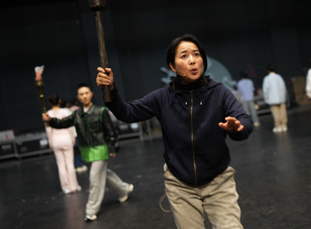 2024年4月7日,浙江小百花越剧团团长蔡浙飞在浙江杭州参加新编历史剧《苏秦》的排练。新华社记者 翁忻旸 摄