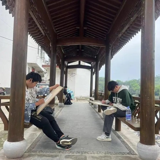 为提高学生观察和认知能力,激发创作思维,在自然中积累视觉元素,深入感受新时代乡村之美,一年一度的采风写生实践活动如期而至。此次采风写生实践活动是《校内外岗位实践》程的具体践行,由动漫设计专业教师吴炜栋、汤厉昊、张梅芳、毛欣玥,环境艺术设计专业教师周益、刘馨蕾、沈熠铭、蒋杰8位教师带队,2023级动漫设计专业和环境艺术设计专业4个班级153名学生赴安徽歙县,进行为期一周的采风写生实践活动。