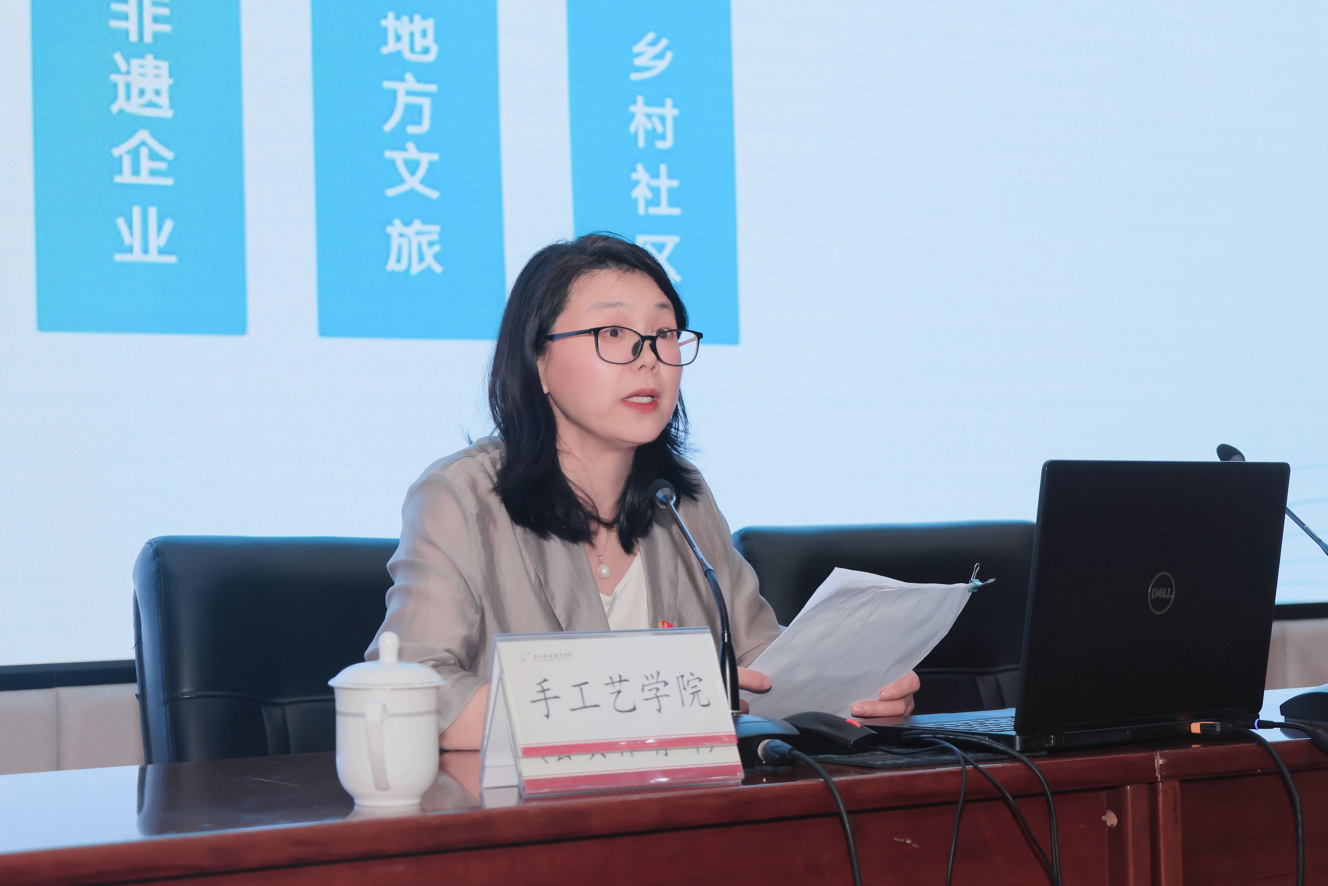 本期初心讲堂,戏曲学院、舞蹈学院、手工艺学院、基础教学部(公共体育部)、马克思主义学院分别作高质量发展二级规划(2023-2027)现场展示和交流分享,对学校半年度综合考核推进、教育教学、科研创作、招生就业、党建工作、专项经费执行、产学合作等情况进行了数据晾晒。