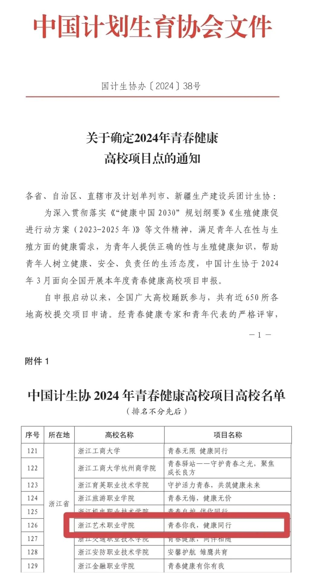 青春健康高校项目是为了有效落实《“健康中国 2030”规划纲要》《生殖健康促进行动方案(2023-2025年)》等文件精神,致力于为青年人提供性与生殖健康的正确知识,帮助他们建立健康、安全的生活态度。此次申报,浙江省共有22所高校获得立项,此次立项是我校在该项目第二次获得国家级立项,不仅代表着我校在青春健康方面领域获得了肯定,更为我校师生提供更广阔的发展空间和更丰富的实践机会。
