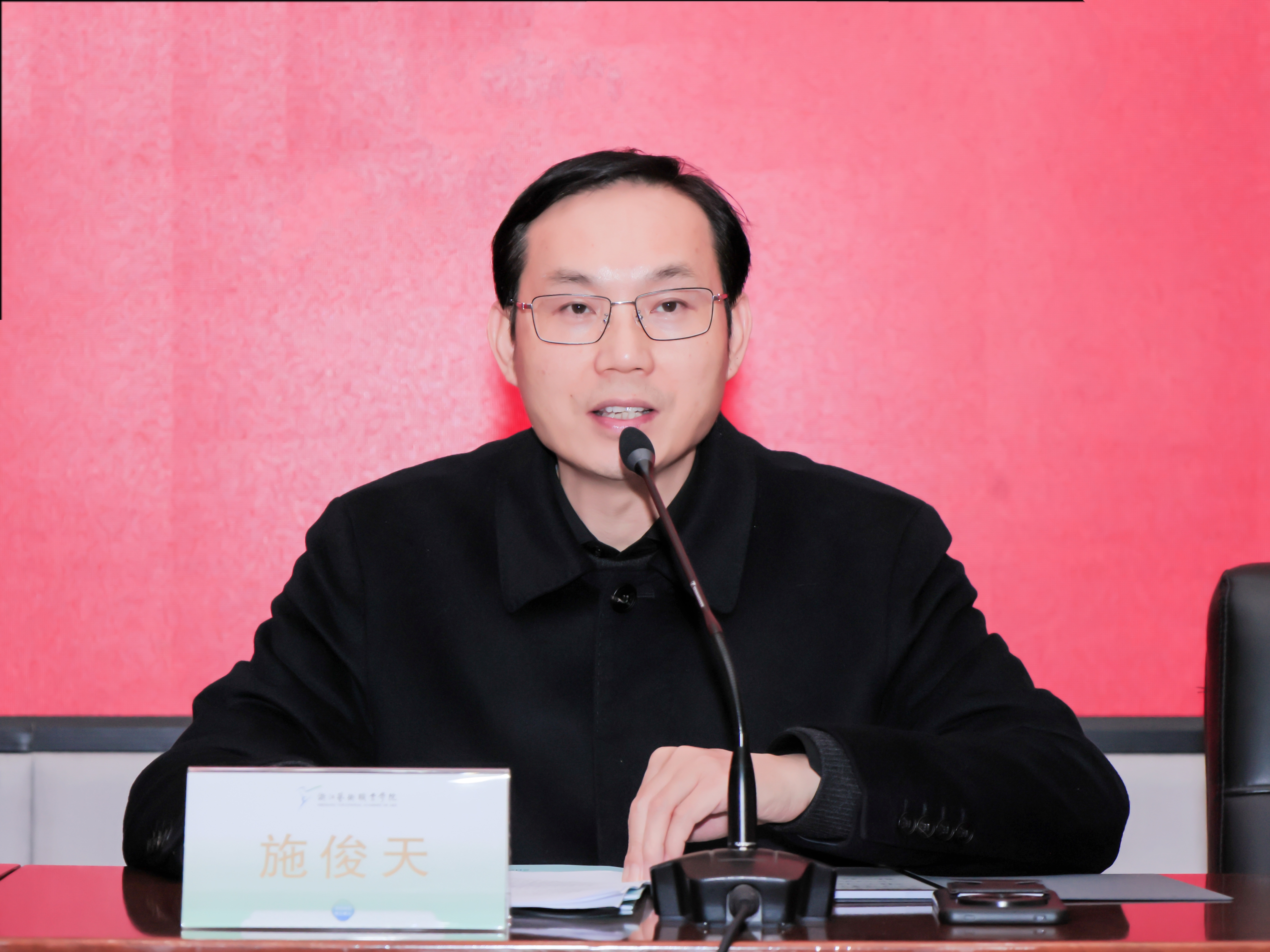 校党委书记薛亮出席会议并讲话,党委副书记、校长施俊天主持会议,党委委员、纪委书记沈军甫作党风廉政建设工作报告,党委委员、副校长刘杨作师德师风警示教育。