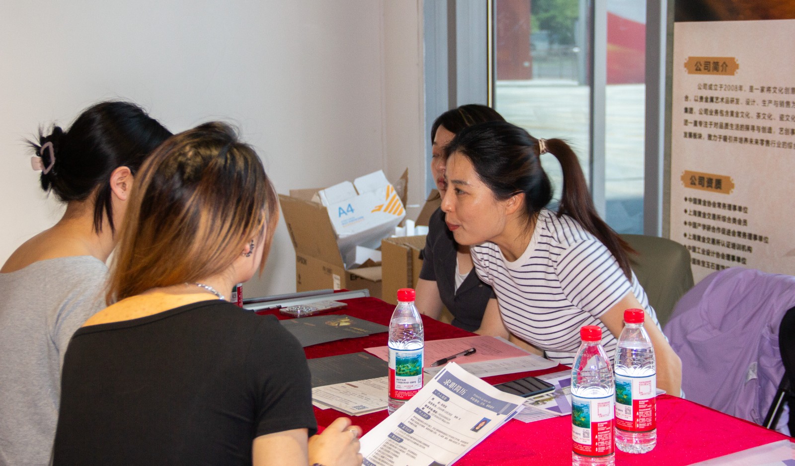 前来应聘的毕业生热情很高,大家手持简历,穿梭在招聘会的人群中,仔细寻找着心仪的岗位。企业招聘人员热情地与他们互动,耐心地解答着每一个问题,现场气氛热烈而有序,充满了求职的活力与希望。